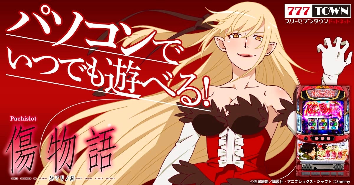 サミーネットワークスが運営するオンラインゲーム「777TOWN.net」で、サミー株式会社の「パチスロ傷物語 -始マリノ刻-」アプリが配信されます。