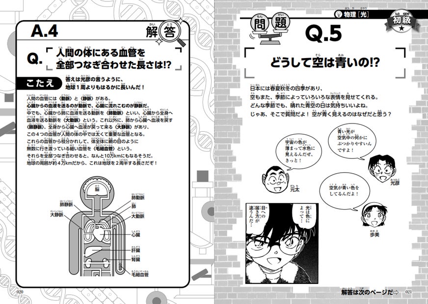 『名探偵コナンの12才までに理科センスを育てる153問』では、生物・化学・物理から環境問題まで、科学的なクイズ形式の問題集があります。