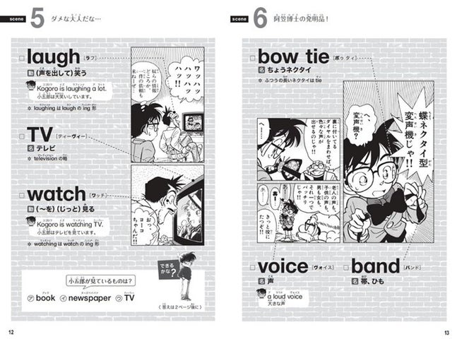 『名探偵コナンの12才までに覚えたい英単語1200』では、まんがシーンを見ながら小学生向けの重要な英単語1200語を楽しく学習できます。