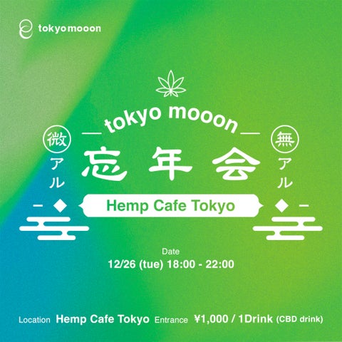 - Hemp Cafe Tokyoと共催するtokyo mooonの忘年会「CBD&CBNでチルする健康的な忘年会」
