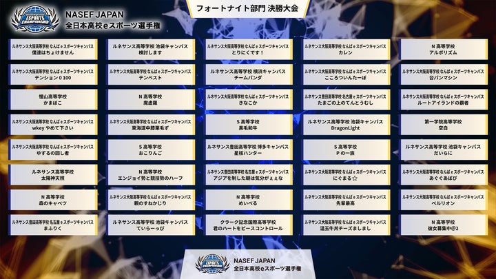 - NASEF JAPANとNTTeSportsが主催する『NASEF JAPAN 全日本高校eスポーツ選手権』の予選大会が終了