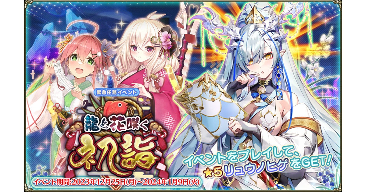 イベントに参加して★5リュウノヒゲを手に入れましょう!また、プレミアムガチャには新キャラクター「サフラン(新春)」「エノテラ (新春)」が追加されます。