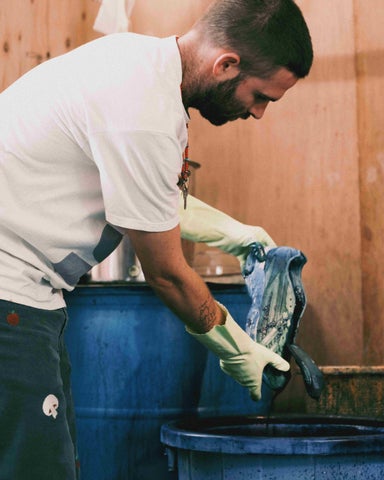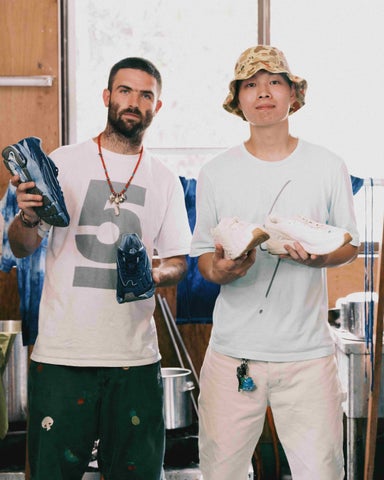 この特別なスニーカーは、日本の伝統的な藍染め技法で染められており、履くことで色合いや風合いが変化していきます。