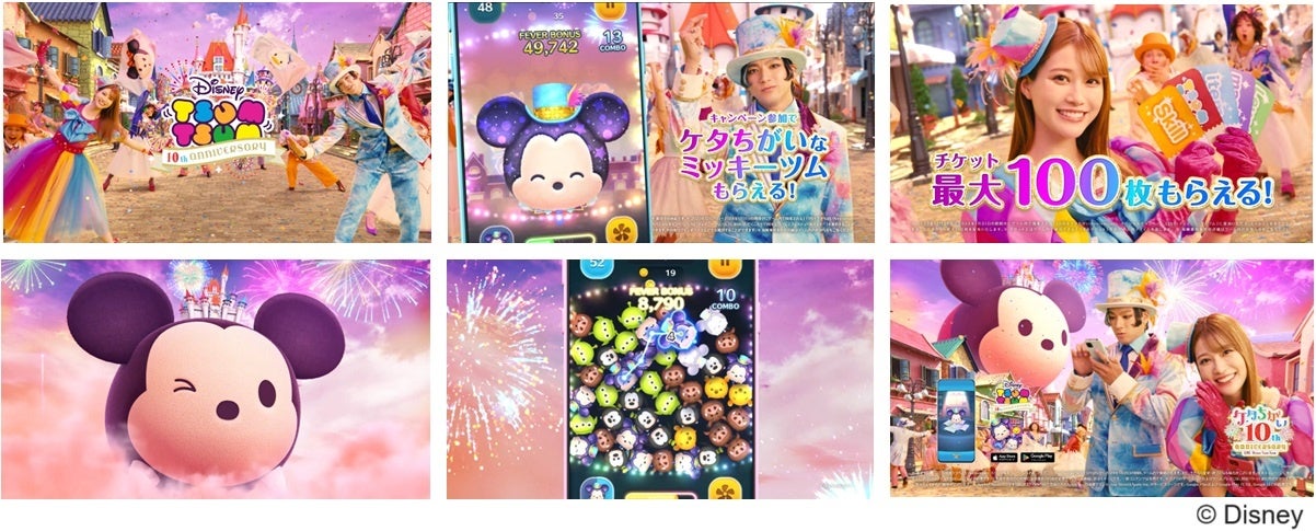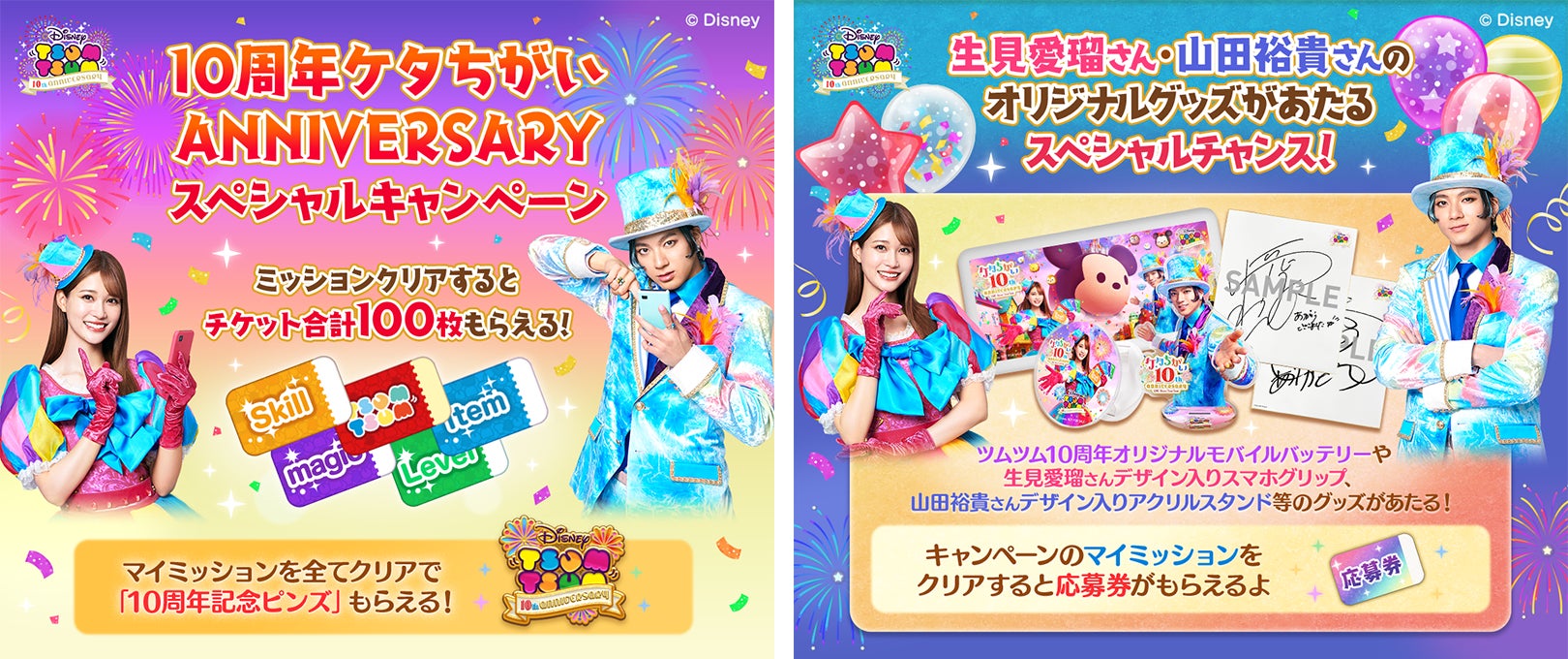 新しいTV CM「LINE: Disney Tsum Tsum 10周年ケタちがいANNIVERSARY」篇が放映され、キャンペーン内のミッションをクリアすると最大で100枚のスキルチケットやアイテムチケットがもらえます。