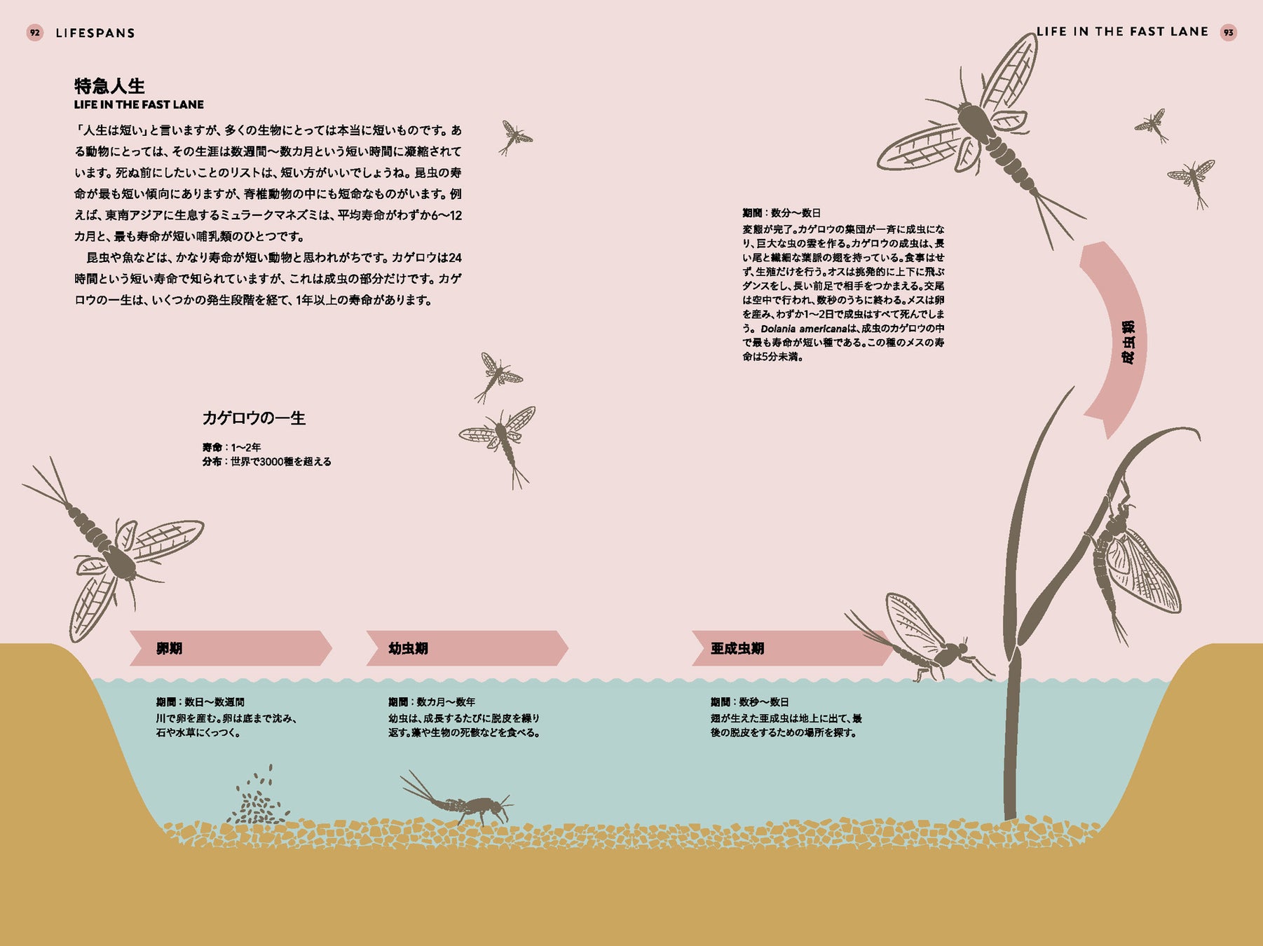 - 「生命の時間図鑑 グラフで見る動植物の体内時計」は、生物の時間の流れを豊富な写真とともにわかりやすく図解した本です。