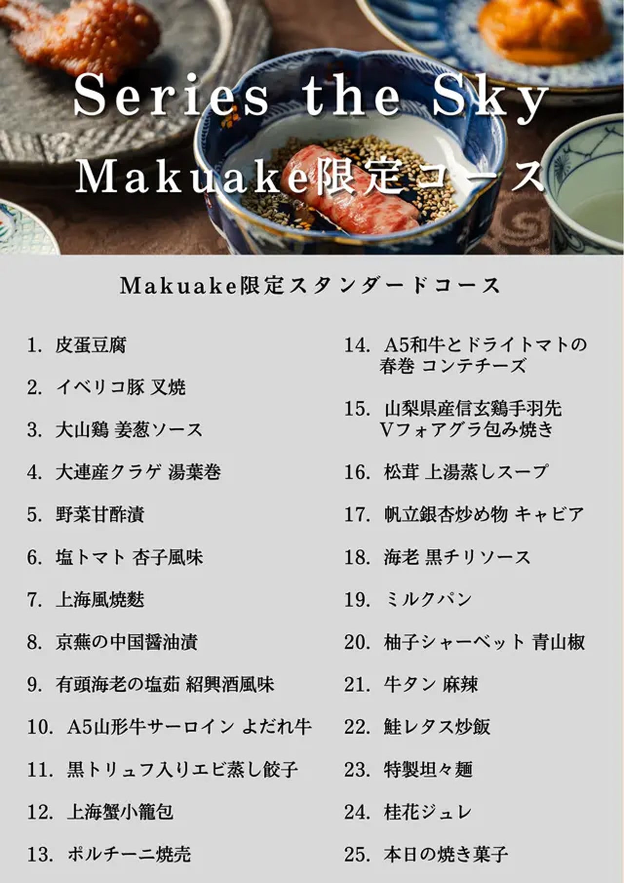 GYRO HOLDINGS株式会社の子会社である株式会社subLimeは、中華レストラン「Series the Sky」の特別ショートコースをMakuakeで販売します。