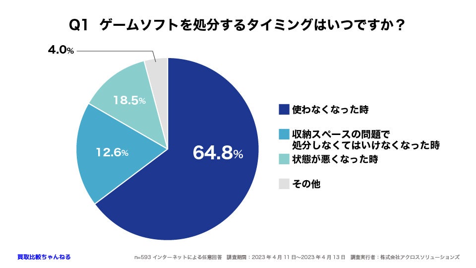 これは以前アンケート調査を行ったゲーム機を処分するタイミングと、ほぼ同じ割合でした(ゲーム機調査:65.4%)。