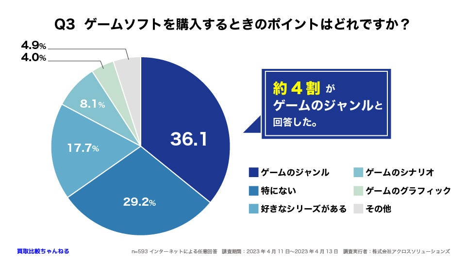 Q3 ゲームを購入するときのポイントとして「ゲームのジャンル」を重視する人が全体の36.1%でした。