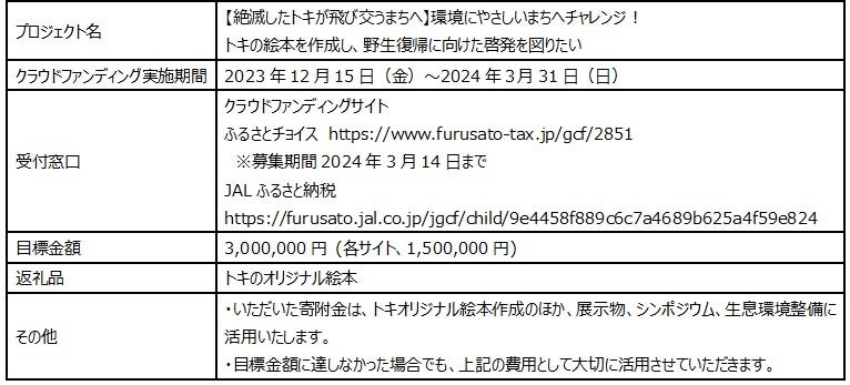 - クラウドファンディングでトキの普及啓発と機運醸成を図る