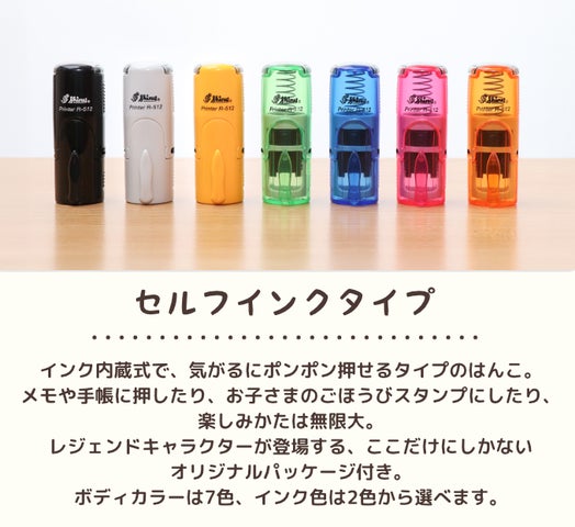 はんこはセルフインクタイプで、メモや持ち物の名前付け、お子さまの連絡帳などに便利です。