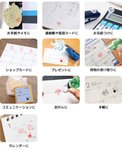 - セルフインクタイプのはんこで、メモや持ち物の名前付けに便利