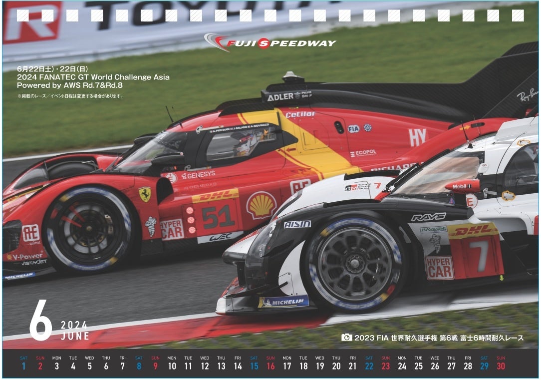 このカレンダーには、富士スピードウェイで開催される主要なレースやモータースポーツイベントの日程が記載されています。