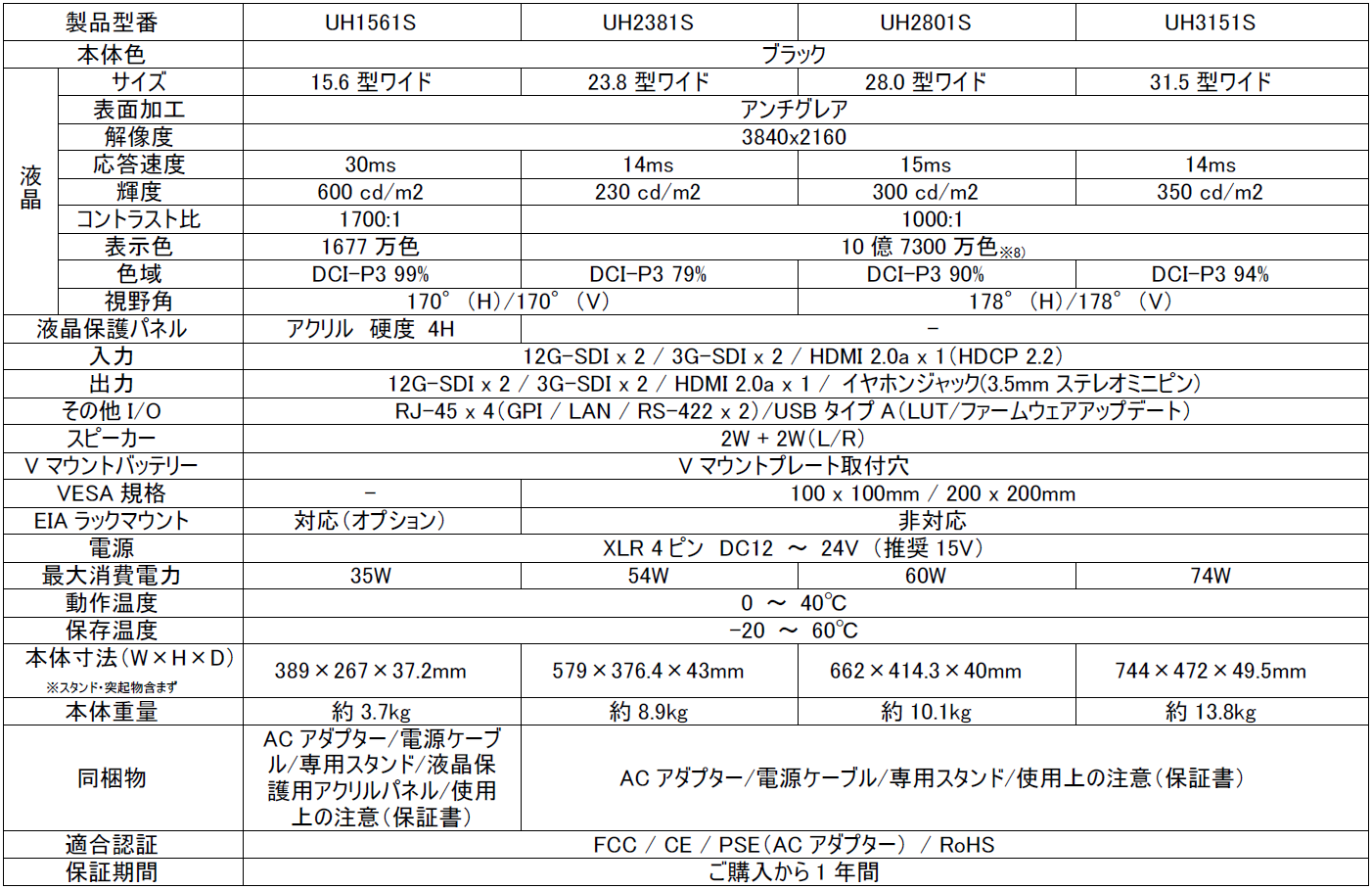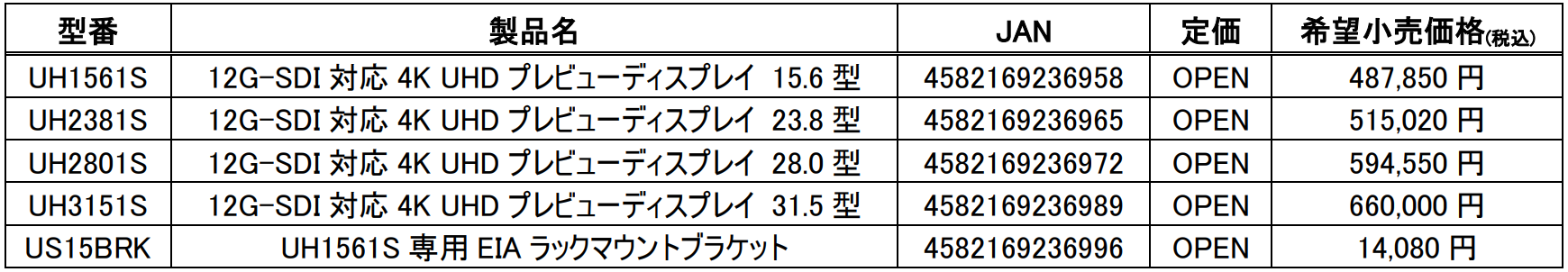 12G-SDI対応4K UHDプレビューディスプレイ 4機種 2023年6月30日(金)発売予定!