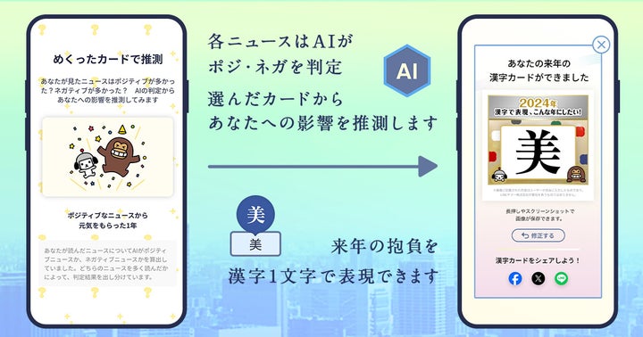 さらに、ユーザーは漢字1文字で来年の抱負を表現し、特別な「漢字カード」を作成できます。