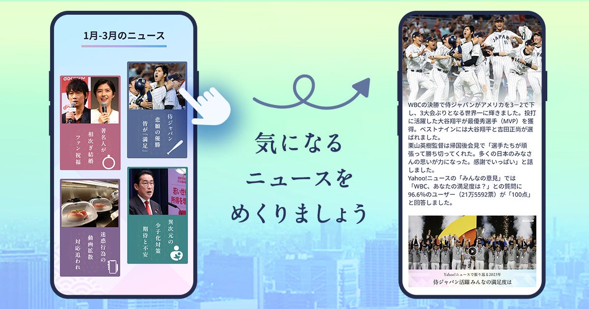 本特集では、「能動的なニュースの振り返り体験」をコンセプトに、かるた風の「ニュースカード」を使って1年を振り返ります。