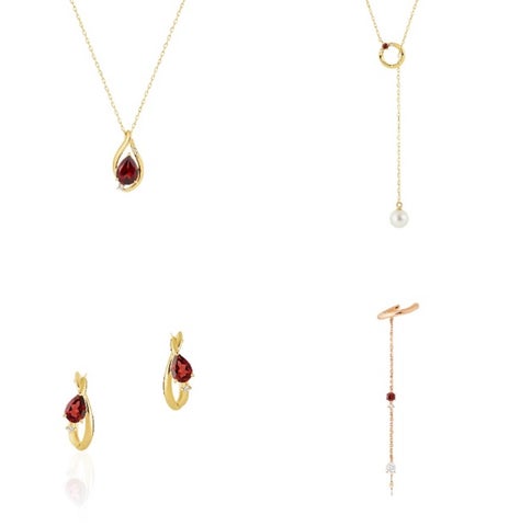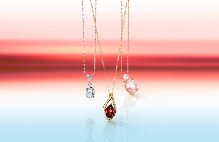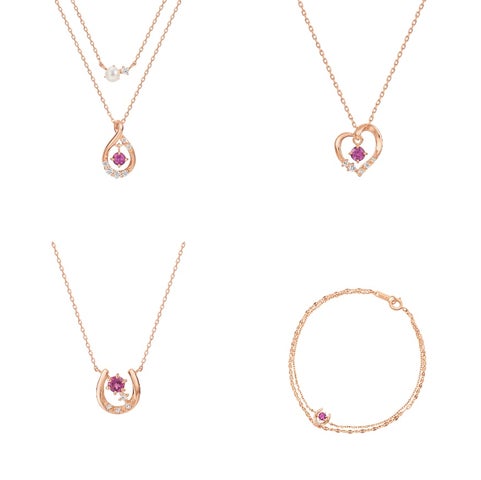 ガーネットやローズクォーツ、アクアマリンなどのパワーストーンや、羽のモチーフや初日の出をイメージしたジュエリーなど、ポジティブな願いを込めたアイテムが揃います。