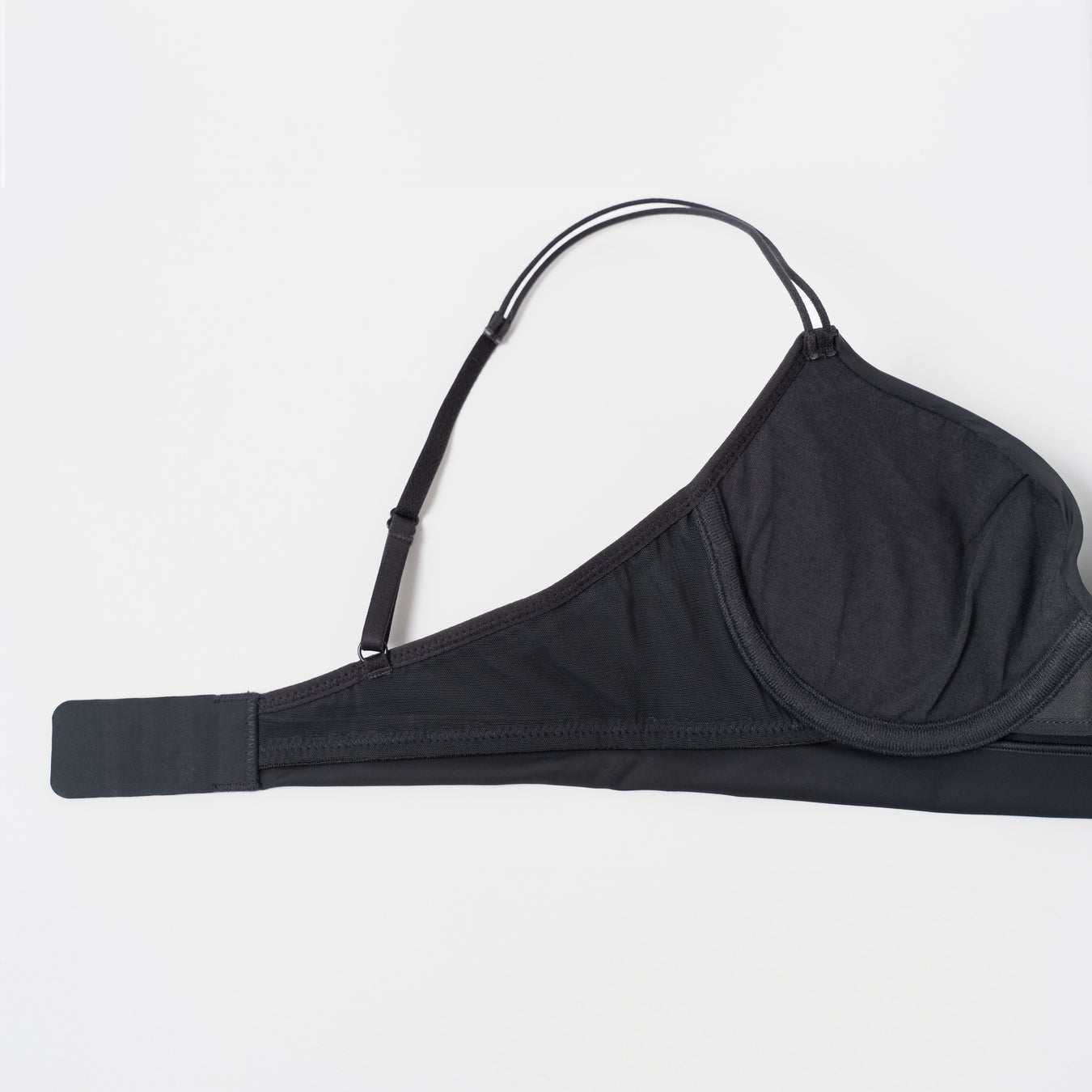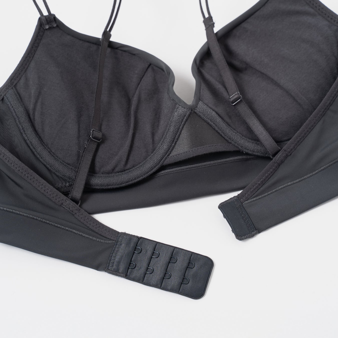 このブラは、山本優希の体験や想いと、Scuuの熟練のパタンナーによる開発によって生まれた、シンプルで洗練されたデザインです。