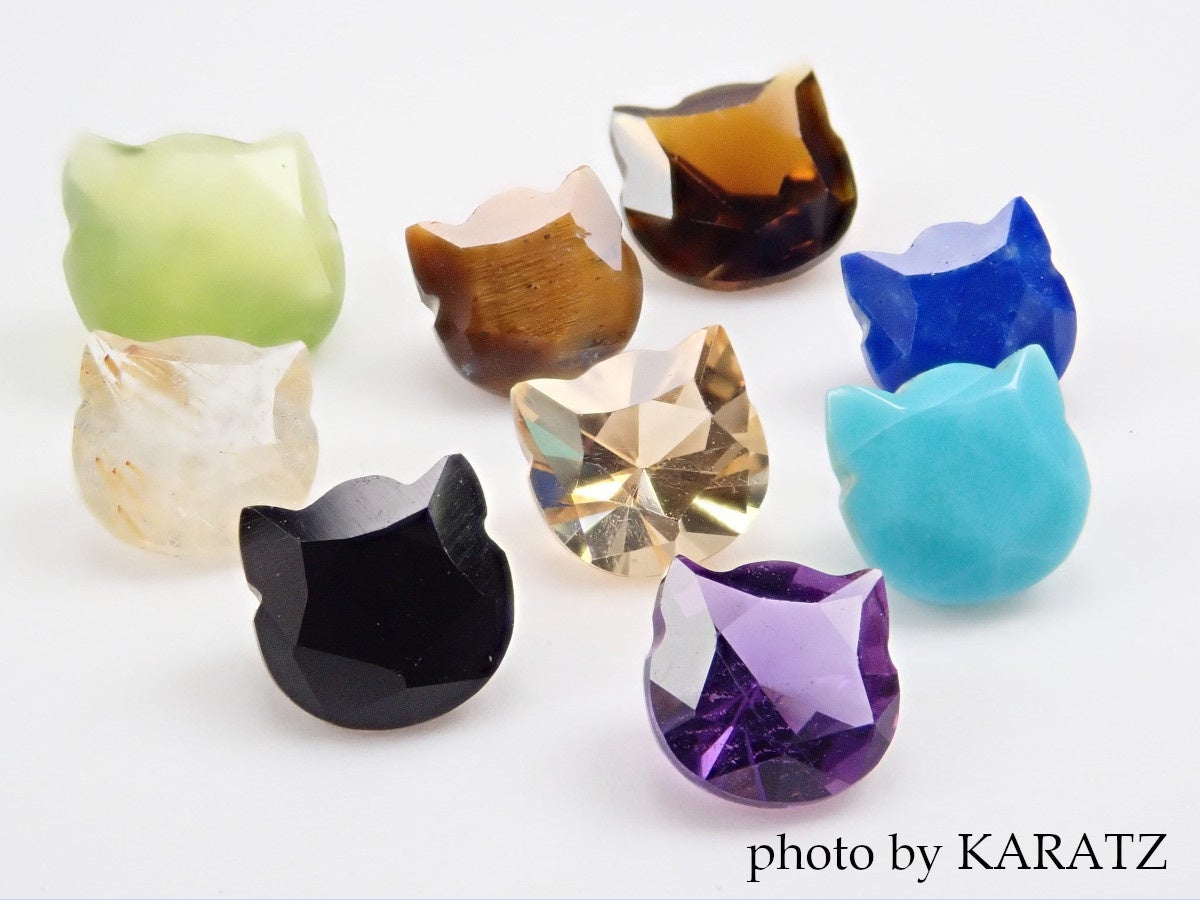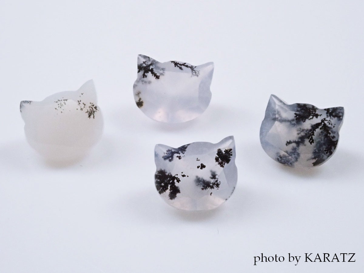 特に、タイの職人によって手作りされた猫の顔型にカットされた宝石や、デンドリティッククォーツが人気です。