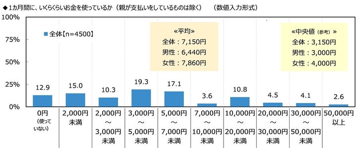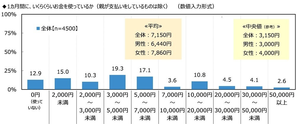 - 平均支出は7,150円で、男性の支出は平均6,440円、女性の支出は平均7,860円