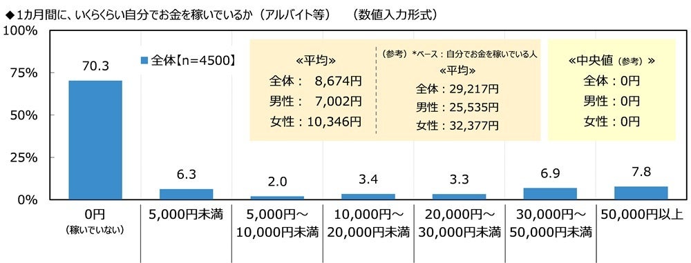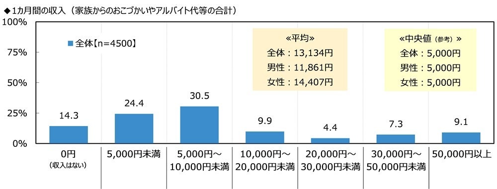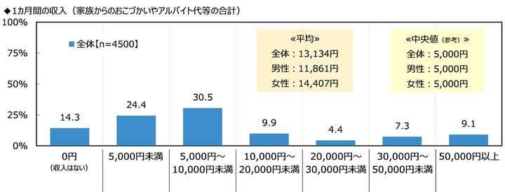 - 高校生の平均収入は13,134円で、内訳はおこづかいとアルバイトの稼ぎ