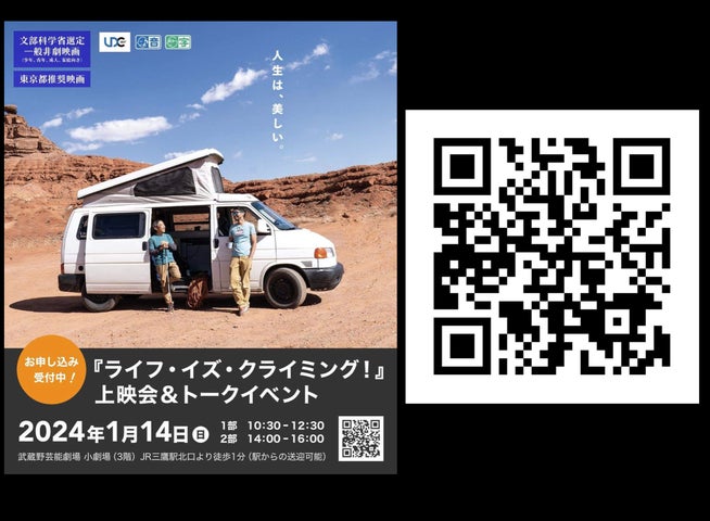 その一環として、2024年1月14日に東京・三鷹駅近くの武蔵野芸能劇場で、ドキュメンタリー映画「ライフ・イズ・クライミング!」の上映イベントを開催します。