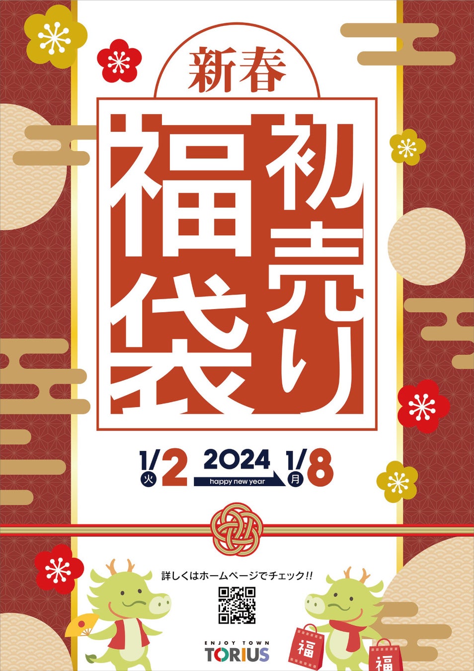 - 1月2日(火)から8日(月祝)まで新春初売りと福袋の販売