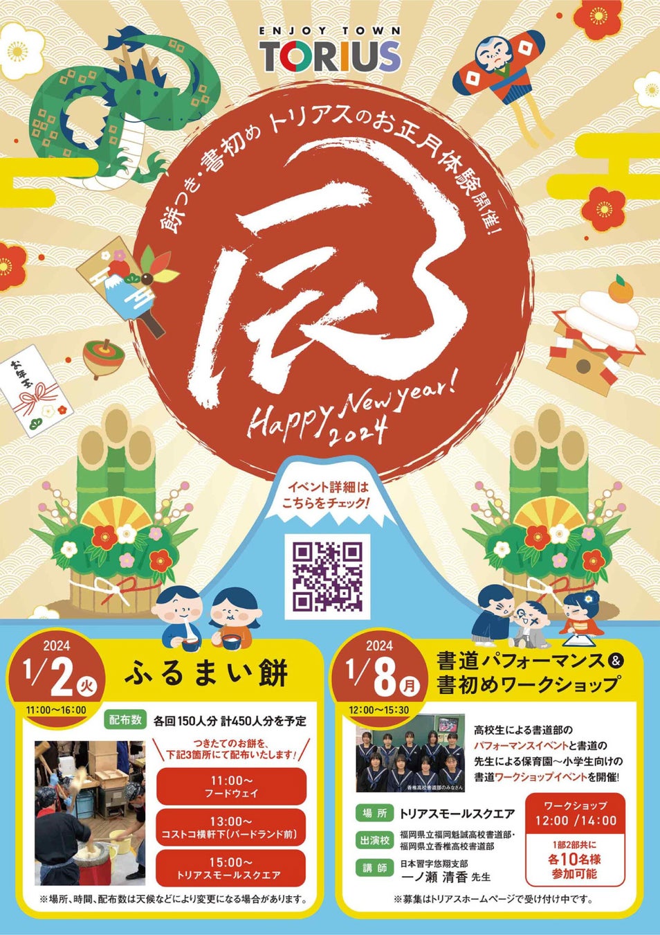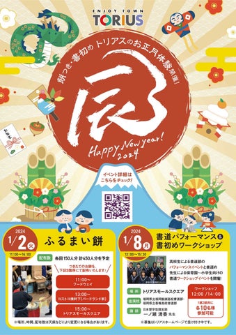 - 新春イベント2024、ふるまい餅イベント、書道パフォーマンス&書初めワークショップ、新春初売り
