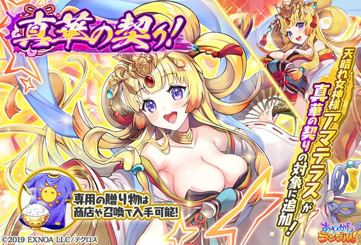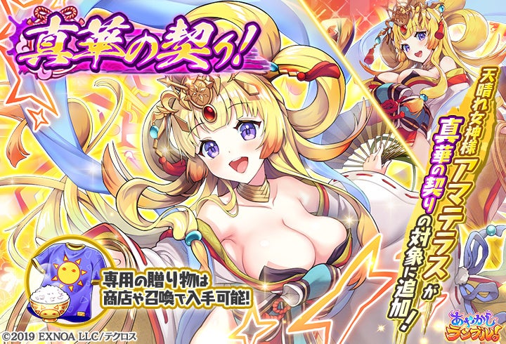 DMM GAMES『あやかしランブル!』にて、「真華の契り」の対象式神に「★5アマテラス」が追加!さらにあやらぶドリーム召喚券が出る限り何回でも引ける「あやらぶドリーム召喚」を開催!