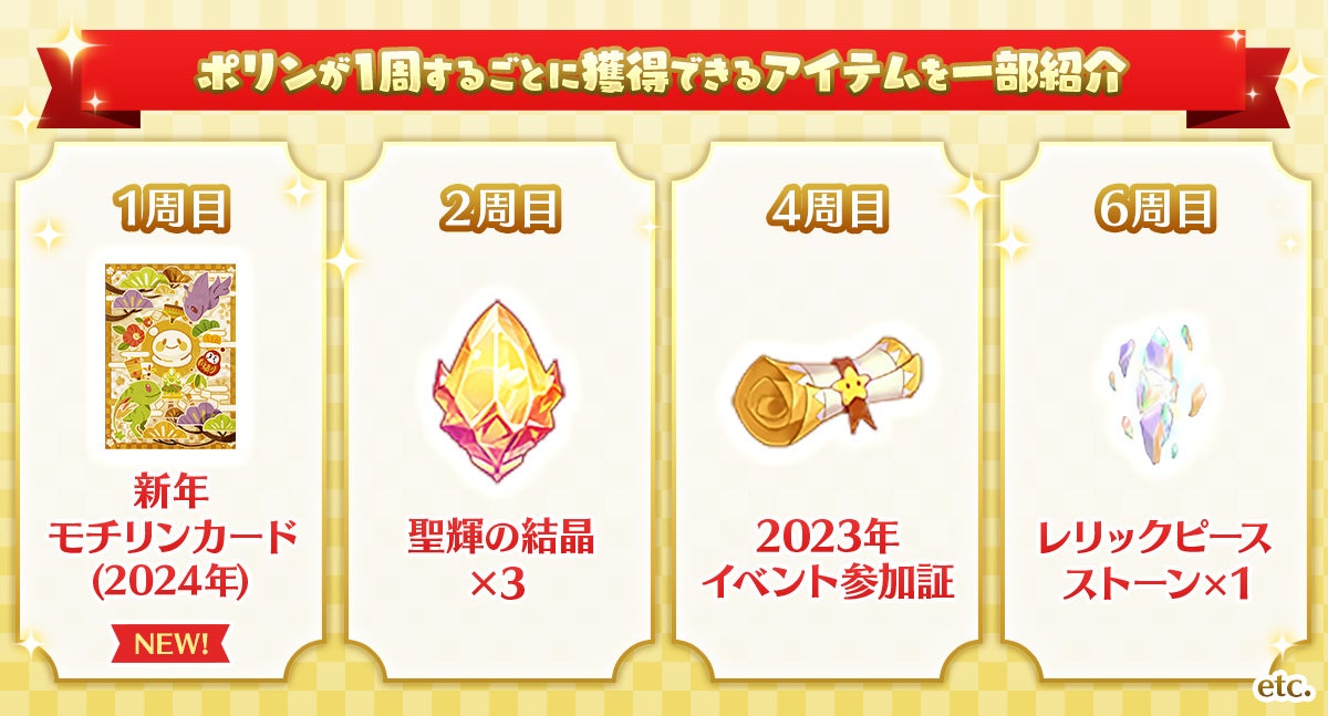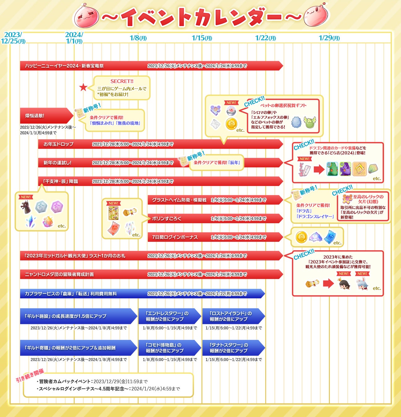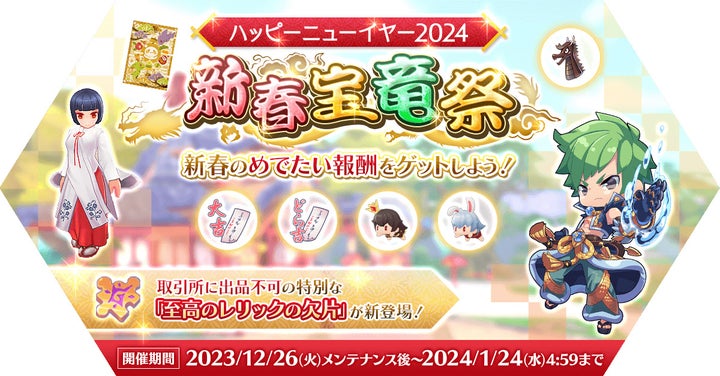 - 新春イベント「ハッピーニューイヤー2024・新春宝竜祭」、煩悩退散!、新年の運試し!、新春スクリーンショット コンテスト2024