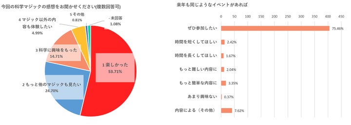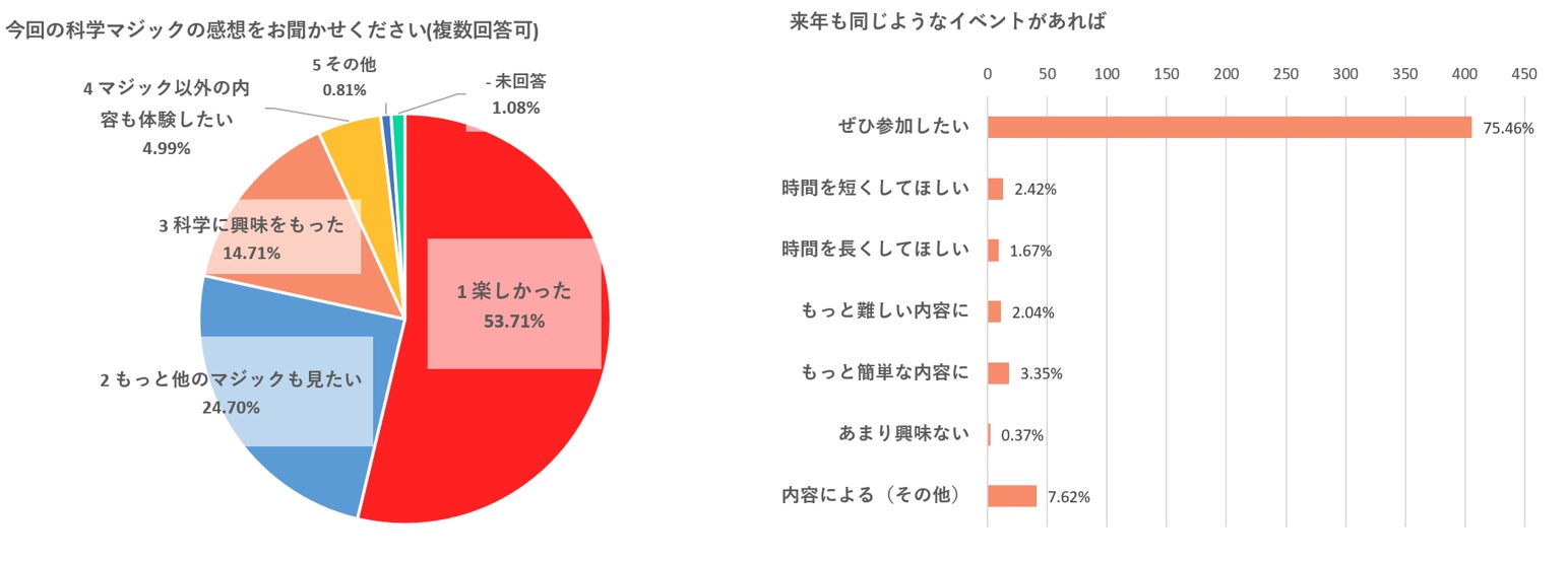 幼稚園生から小学生まで幅広い年齢層の子どもたちが参加し、科学への関心が高いことがわかりました。
