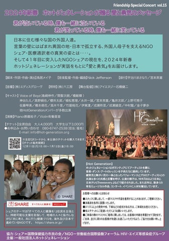 1983年に設立された国際保健団体「シェア=国際保健協力市民の会」と、1999年から活動している「一般社団法人ホットジェネレーション」が共同で制作したミュージカルが、1月12日に五反田文化センターで上演されます。
