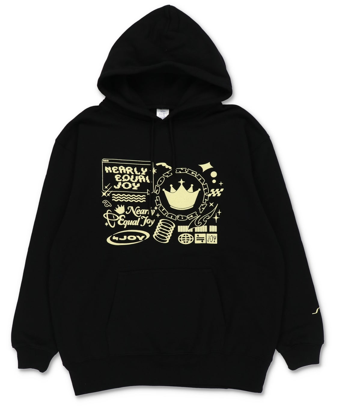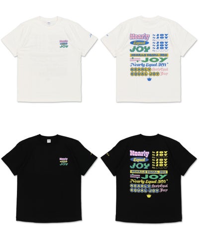 - Tシャツやパーカーには≒JOYのロゴやオリジナルグラフィックがあり