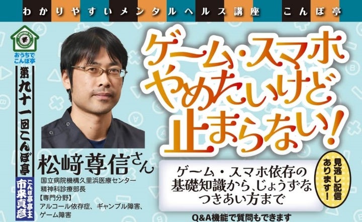 久里浜医療センターの松﨑尊信さん(精神科診療部長)がゲスト講師として招かれ、ゲーム・スマホ依存の定義や治療方法、脳への影響などについて話します。