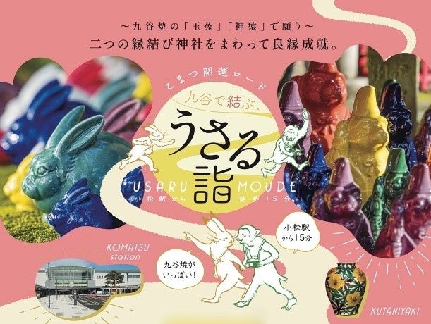 このロードでは、九谷焼の「玉菟」「神猿」を神社に納めて良縁成就を祈願する「うさる詣」や、九谷焼を使った体験メニューや観光スポットを巡りながら楽しく参拝することができます。