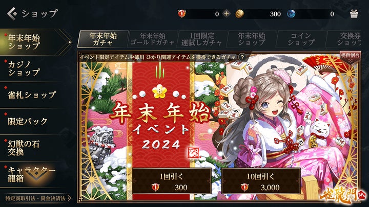 エヌ・シー・ジャパン株式会社は、スマートフォン向けの美しい3D麻雀アプリ『雀龍門M』にて、12月27日から「年末年始イベント2024」を開催します。