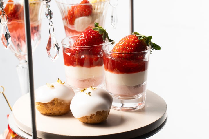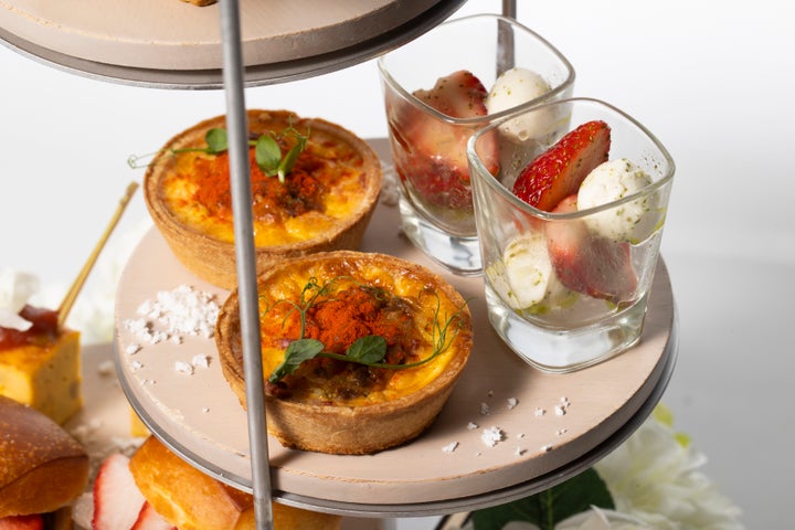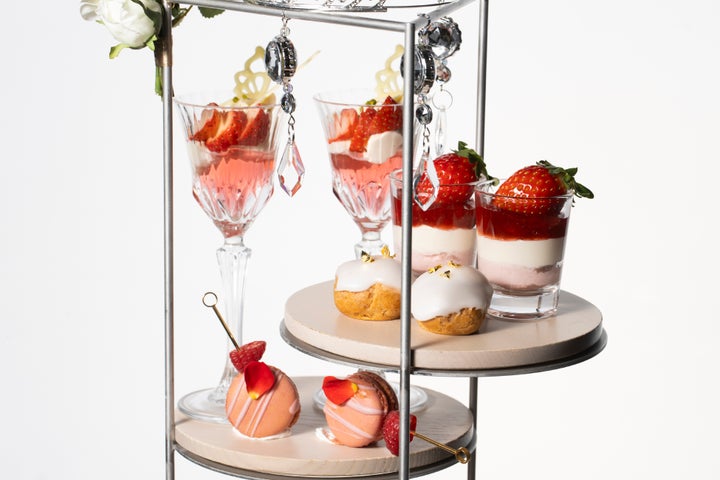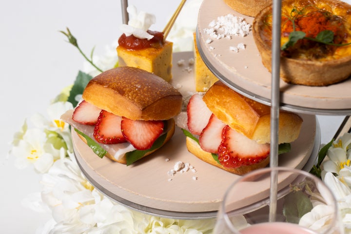 • 6段のスタンドには甘酸っぱい苺のパフェやタルト、セイボリーのブリオッシュサンドなどがラインナップ