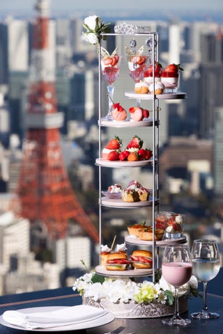 六本木ヒルズ森タワー52階の「THE MOON」で高さ70cmの苺づくしアフタヌーンティーがスタート!
