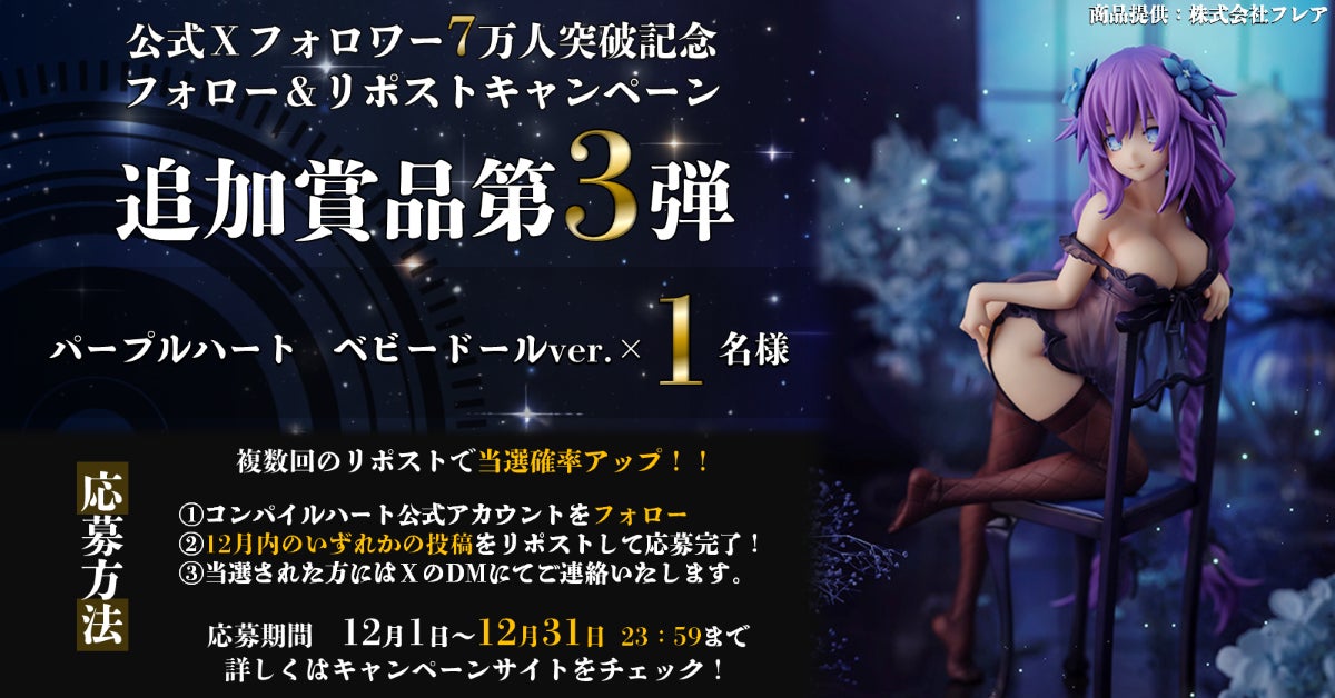 アイディアファクトリー株式会社の子会社である株式会社コンパイルハートは、本日12月27日(水)、コンパイルハート公式X上で開催中のフォロー&リポストキャンペーンにおいて追加賞品を発表しました。