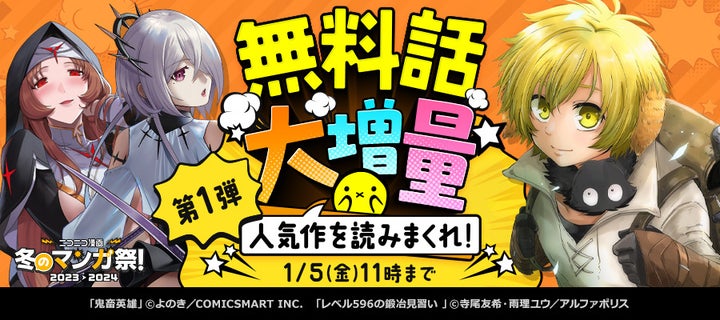 - 期間限定で100作品以上のマンガの無料話が増量されるキャンペーン開催