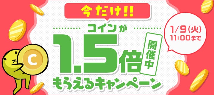 - ニコニコ漫画アプリでコインを購入すると1.5倍のコインがもらえるキャンペーンも