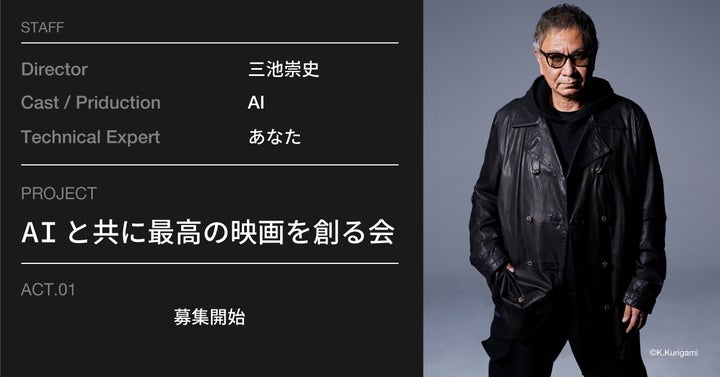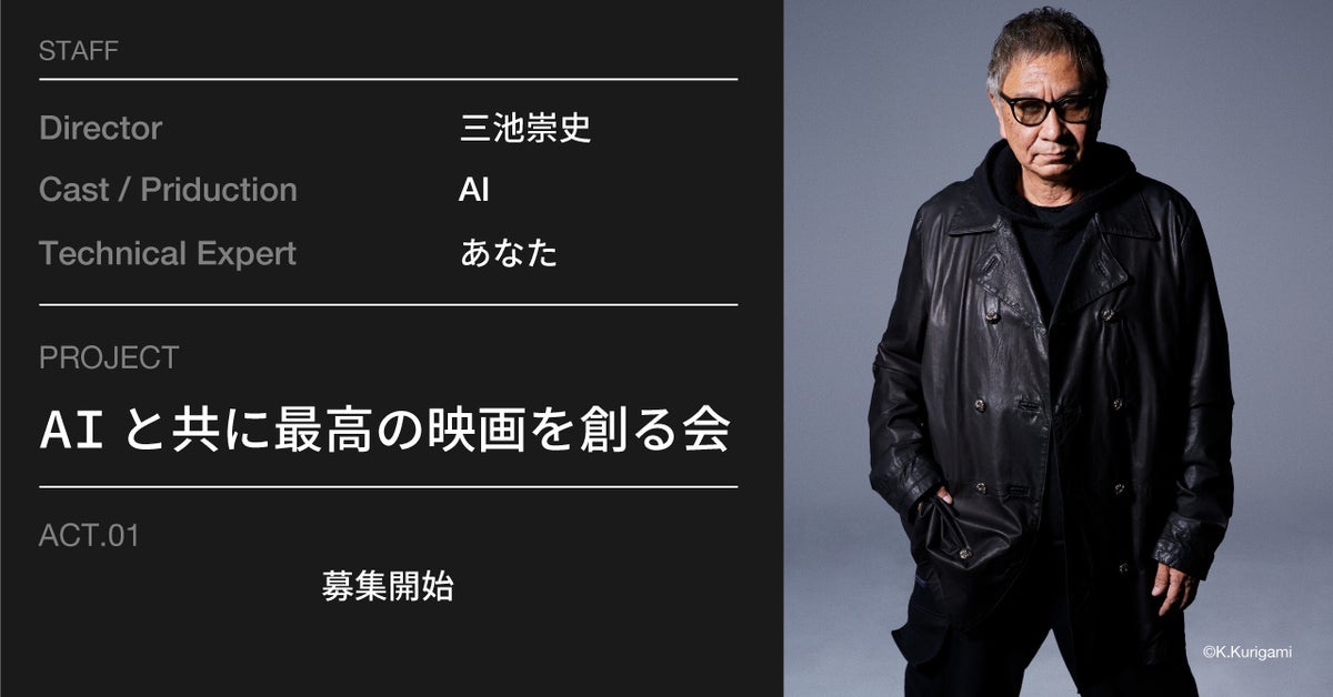 株式会社AI-Actsは、映画監督三池崇史氏によるAI映画制作プロジェクト『AIと共に最高の映画を創る会』への参加メンバーを募集しています。