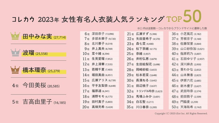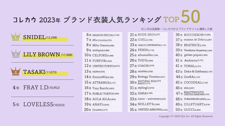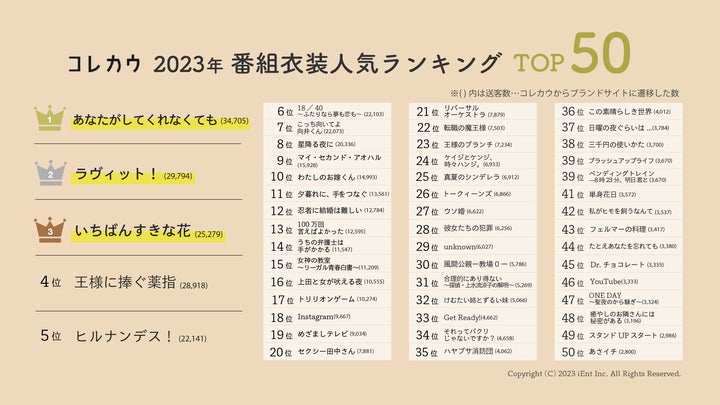 - 自社サービス「コレカウ」を通じて、2023年にテレビ放送された番組や出演したタレントのファッション、ブランドの人気ランキングを発表した。