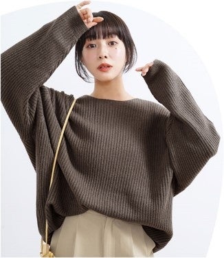 alottaのアイテムは、もちふわ素材のゆるニットトップスや、衿元にパールビーズを施したミラノリブニットなど、華やかで女性らしいデザインが特徴です。