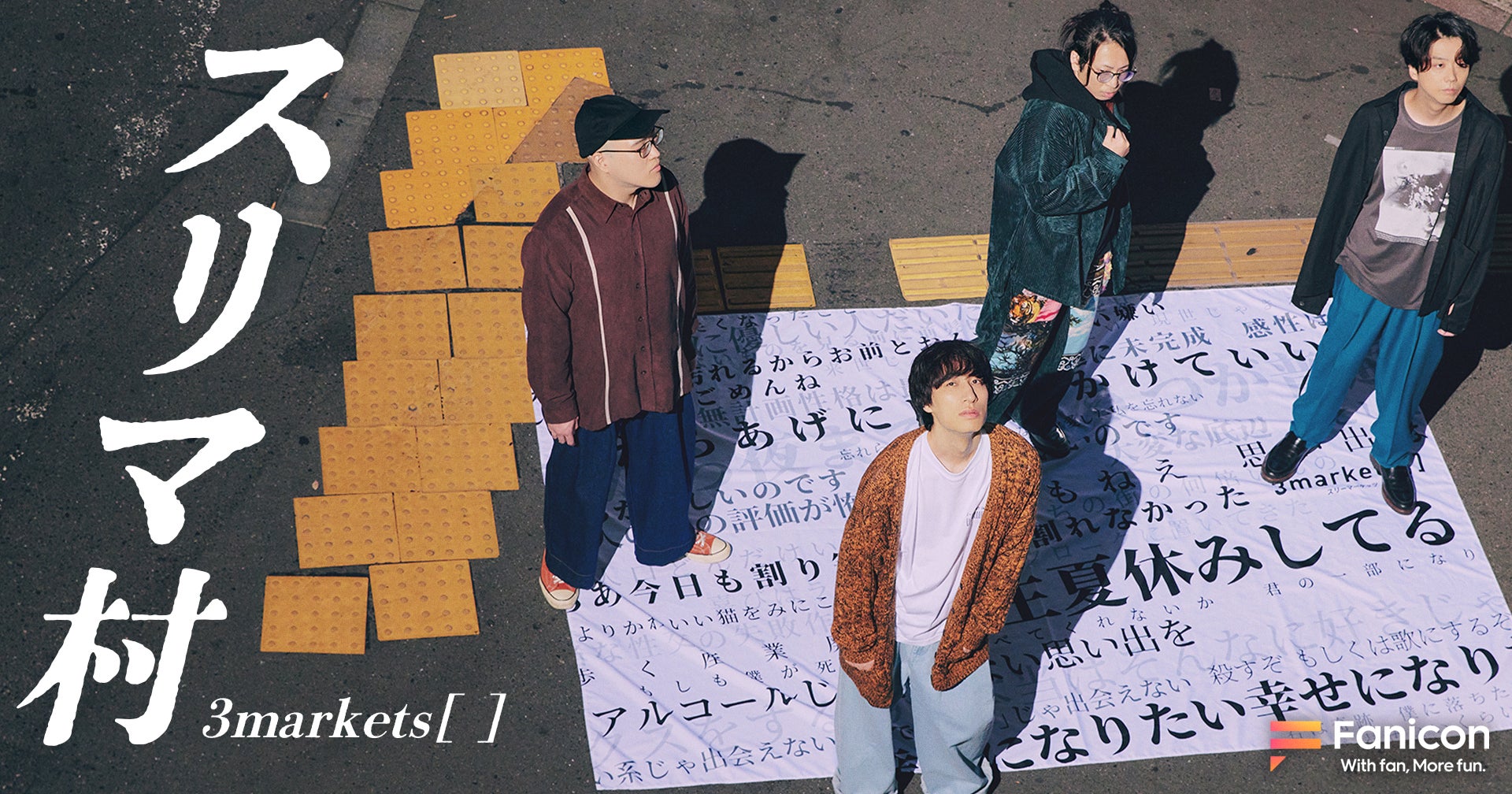 注目の4ピースロックバンド、3markets[]の公式ファンコミュニティ『スリマ村』もあります。