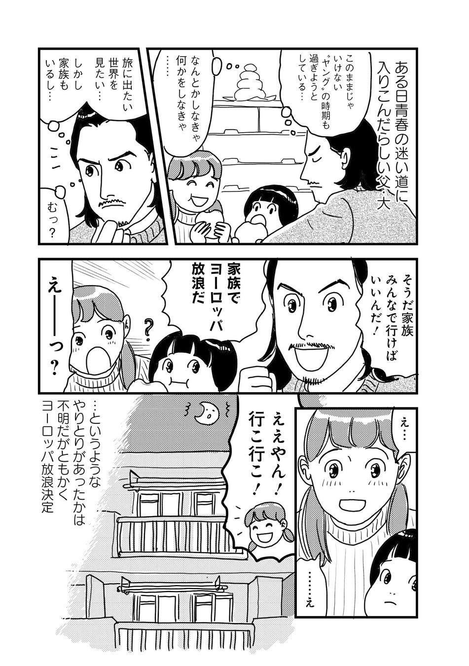 このトラベルエッセイは、40年前に両親に連れられてヨーロッパを放浪した当時四歳の高岡大祐の体験を描いています。