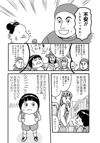家族連れでの放浪旅には様々なハプニングやトラブルが待ち受けますが、子供を連れているという状況での解決策が笑いを誘います。