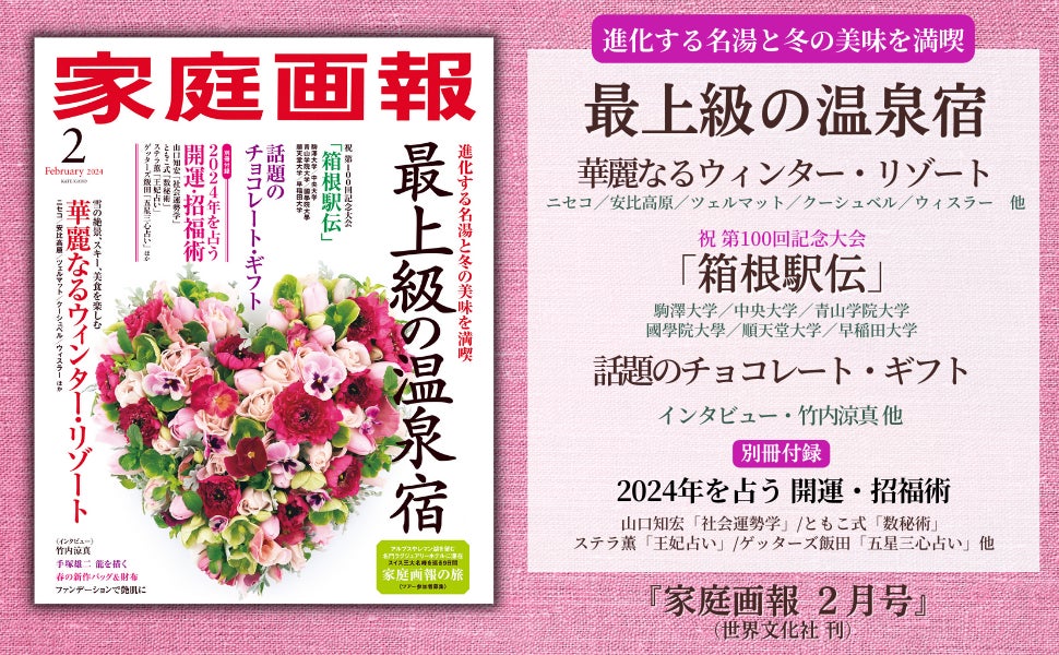 特集では、客室の拡大やオーベルジュ型、プライベートサウナ、親孝行温泉、ランドスケープ型などのカテゴリーに分け、今後のラグジュアリー温泉宿のトレンドを探ります。