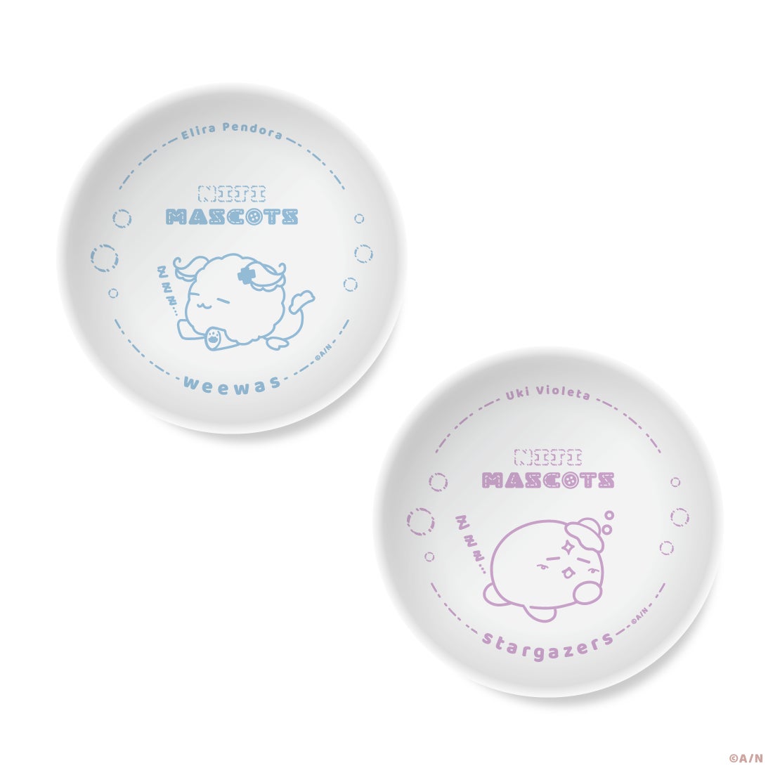 - エリーラ ペンドラのマスコット「weewas」と浮奇ヴィオレタのマスコット「stargazers」のアクリルスタンド、缶バッジ、ミニプレート、ぬいぐるみが販売