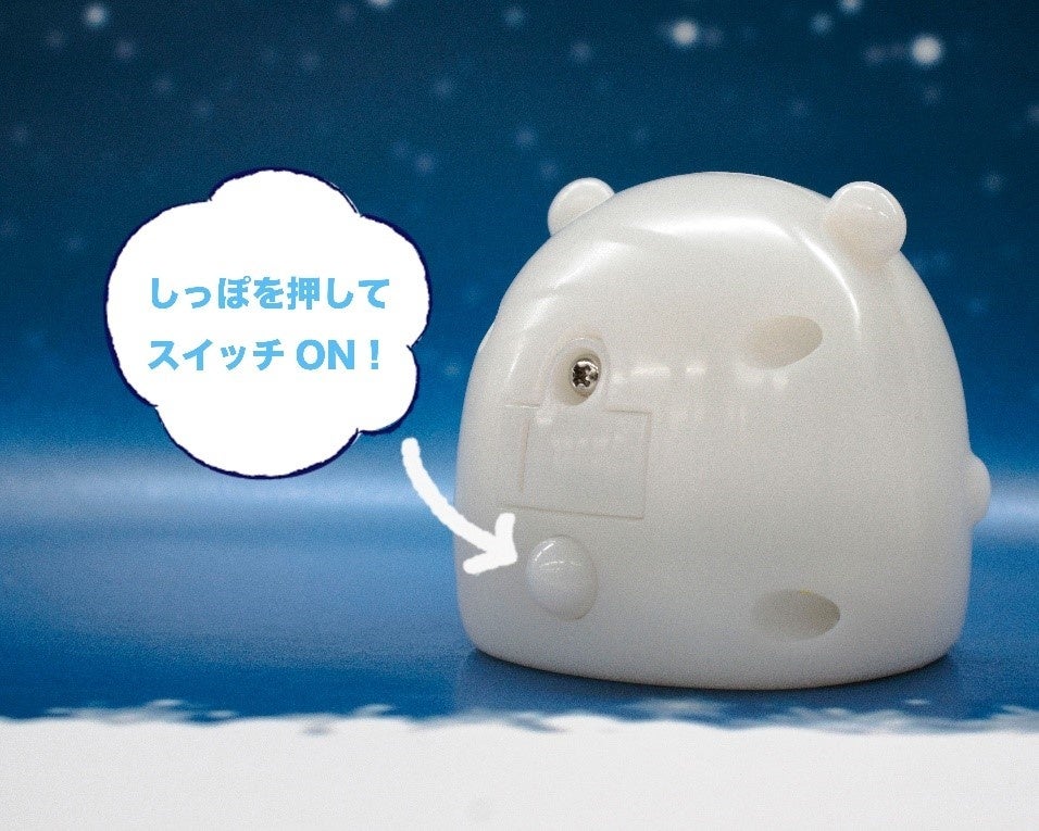 かまくらのしっぽを押すと、中がほんわりと光ります。