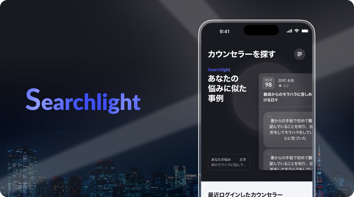 オンラインカウンセリングサービスのUnlaceが、AIを活用した新機能「searchlight」を提供開始する。